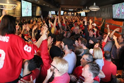 Make sure to contact the bars prior to your arrival to make sure they are a 49ers game watch bar. This room also has a huge bar near the center and a mimosa and bloody mary bar on the 2nd level. Yes this back room has a 2nd lever. Typhoon saloon is truly a place to come and enjoy a relaxing day and also to be part of the biggest 49ers games ever.